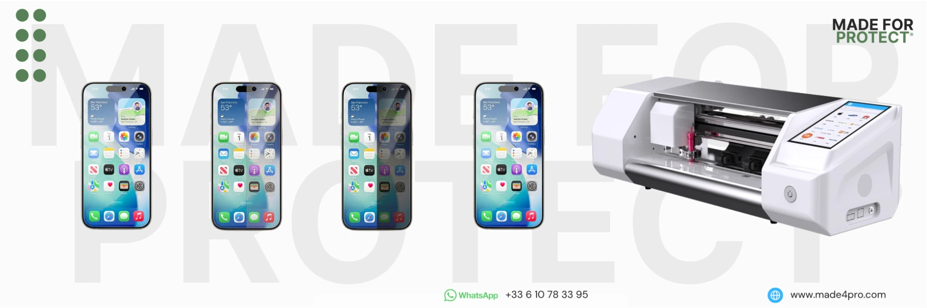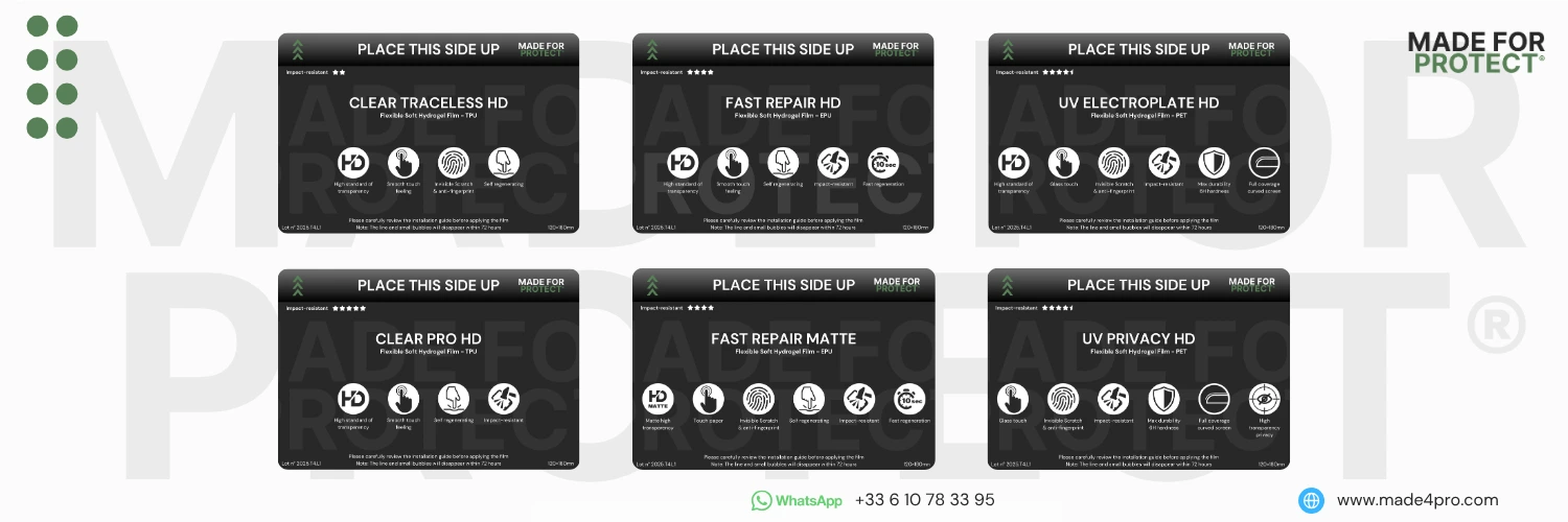 - Une solution de protection Hydrogel propriétaire Made For Protect.